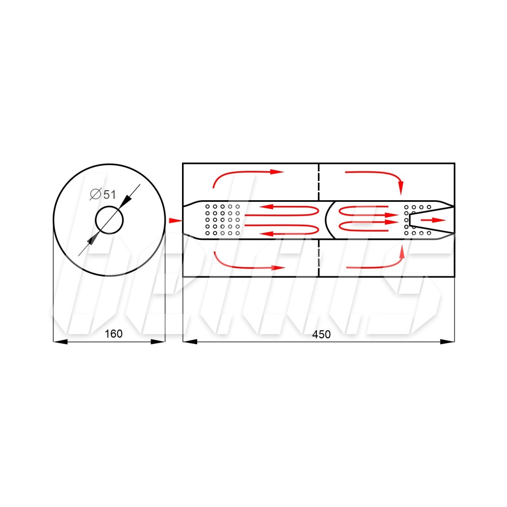 Универсальный глушитель штатной, резонансной конструкции c отражателем (конусом) в центре. Такой глушитель подойдет для большинства автомобилей. Предназначен для ремонта или изготовления выхлопной системы автомобиля. Для установки требуются сварочные работы!