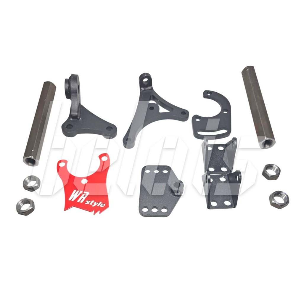 - Для установки данного комплекта подвески необходимо перенести тормозную систему вперед. Также рекомендуем удалить резиновый отбойник - серьезный контакт отбойника с верхним рычагом нежелателен.