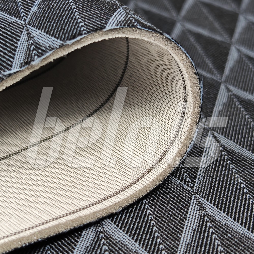 Автомобильный жаккард представляет из себя пирог, состоящий из слоев в виде подложки, поролона и самой ткани жаккард, которые скреплены между собой огневым (горячим) методом триплирования — это склеивание слоев материала путем прямого воздействия пламени, где специальная марка пены (поролона) выступает в качестве клеевого агента. Поролон плавится и скрепляет между собой слои материала. Это наиболее прочный метод скрепления материалов между собой. Такая процедура придает жаккарду дополнительную прочность и объем.